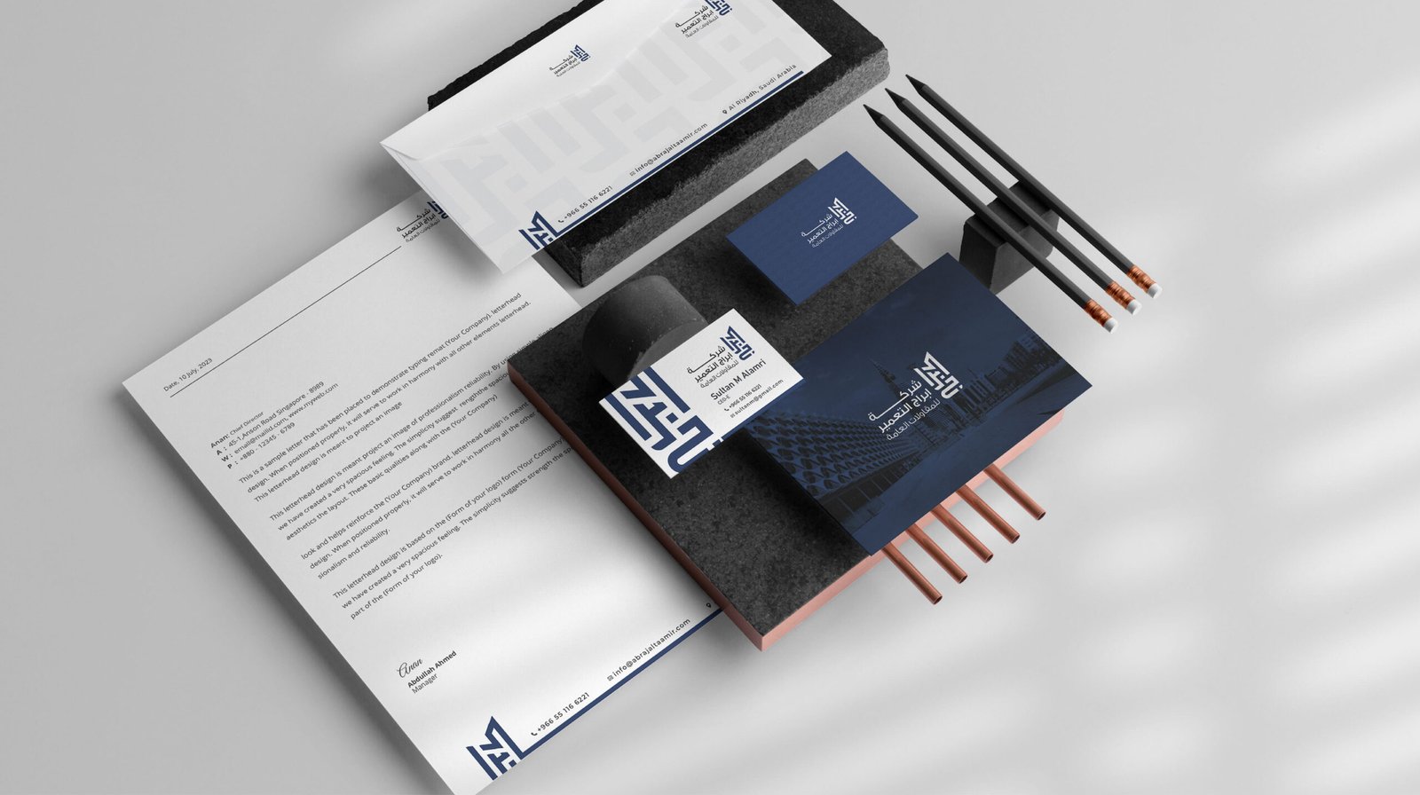 تصميم هوية بصرية متكاملة وشعار احترافي لشركة أبراج التعمير للمقاولات العامة